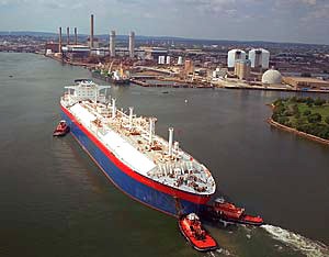 However few of these observations compared to the potential threat posed by the presence of the French owned Distigas liquefied natural gas (LNG) operations located on the mystic river in Everett. Roughly every week more than three billion cubic feet of flammable LNG is offloaded by enormous vessels that navigate through the inner harbor traveling under a major road bridge and over three tunnels. The route sits within one mile of the international airport, the seat and offices of state government, the majority of the cities tourist attractions and hotels, and the homes and workplaces of hundreds of thousands.
