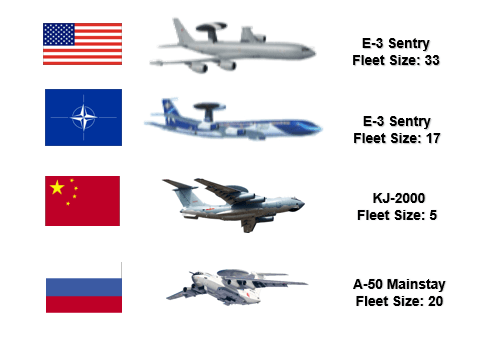 Foreign militaries quickly followed on the success of the earliest US design, originating with a team from MIT Lincoln Laboratory in Lexington Massachusetts with a prototype on the ramp at Hanscom AFB. Foreign adversaries have since designed, built and sustain their own airborne radar aircraft. Operating a fleet of 21 Ilyushin Il-76-based Beriev A-50 AEW&C aircraft, the Russian Air Force fields similar capability to the American E-3 Sentry, along with a tactical data language (TDL) equivalent to Link 16 called OSNOD. There is also an export version, notably to India which operates a squadron of five aircraft, although not all aircraft are always operational at any given time. China’s air force also used the Il-76 as the platform for an indigenous airborne radar system, named the KJ-2000, with five aircraft (so far).