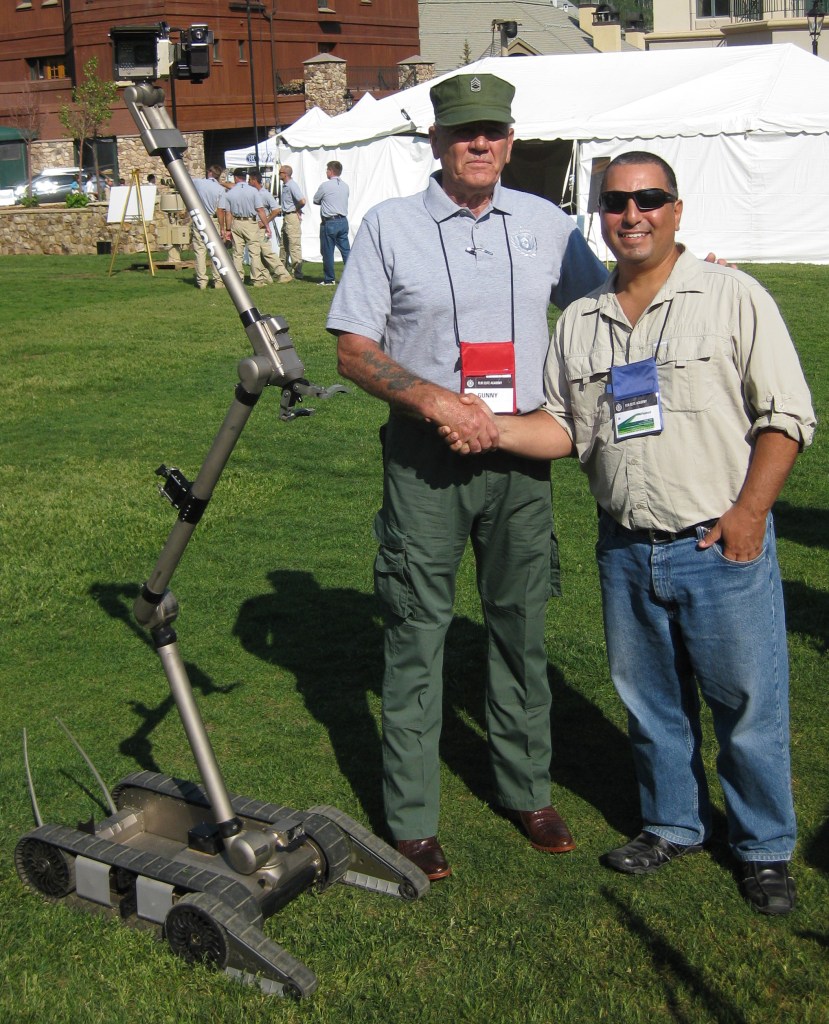 {5} R Lee Ermy and author with PackBot at FLIR bomb maker course, Colorado, 2011