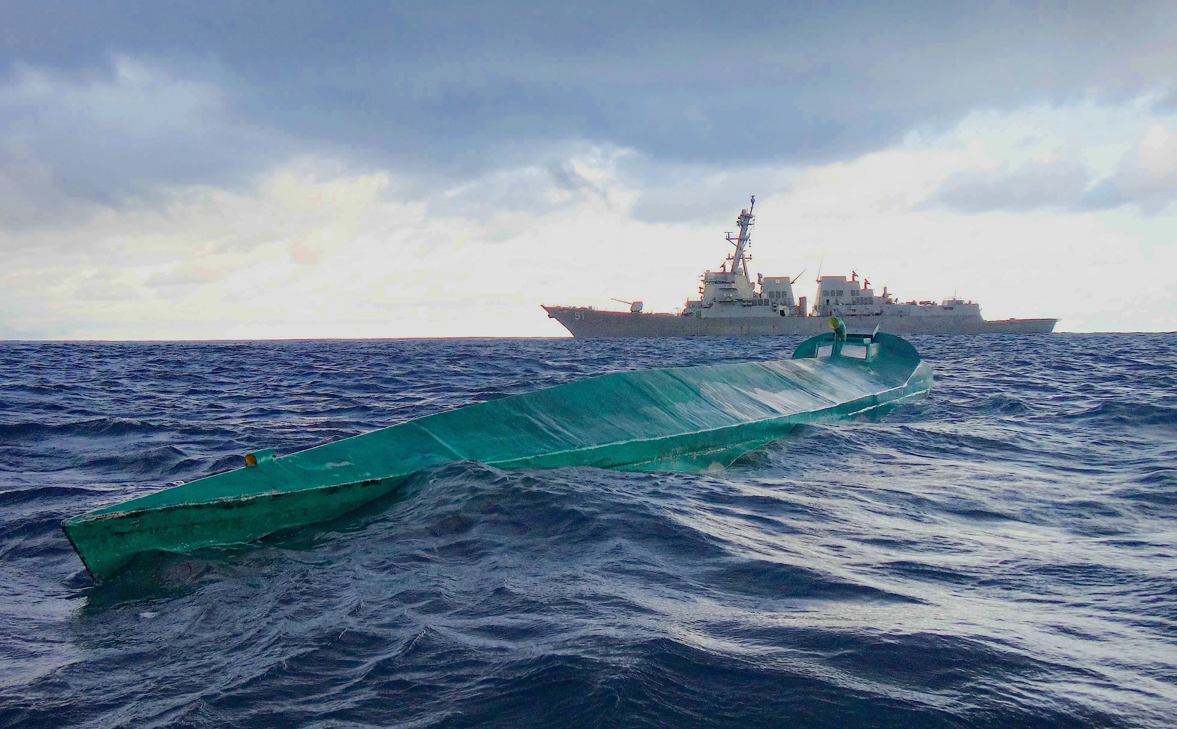 {2} The U.S. Coast Guard supervises the intentional sinking of suspected drug-smuggling boats on (U.S. Coast Guard)