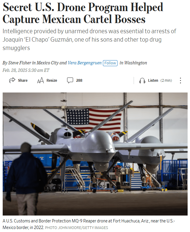 This report aims to provide a comprehensive overview of the major drug cartels operating in Mexico and Central America, the growing role of U.S. intelligence and military assets in countering them, and the broader implications of these efforts. By examining the key players—such as the Sinaloa Cartel, CJNG, and Los Zetas—alongside the latest surveillance and enforcement measures, we can better understand the shifting dynamics of the drug trade. The use of unmanned aerial vehicles (UAVs) and special operations forces marks a significant shift in how the U.S. combats illicit networks, yet these efforts are not without controversy, particularly regarding Mexican sovereignty and the risk of escalating violence.