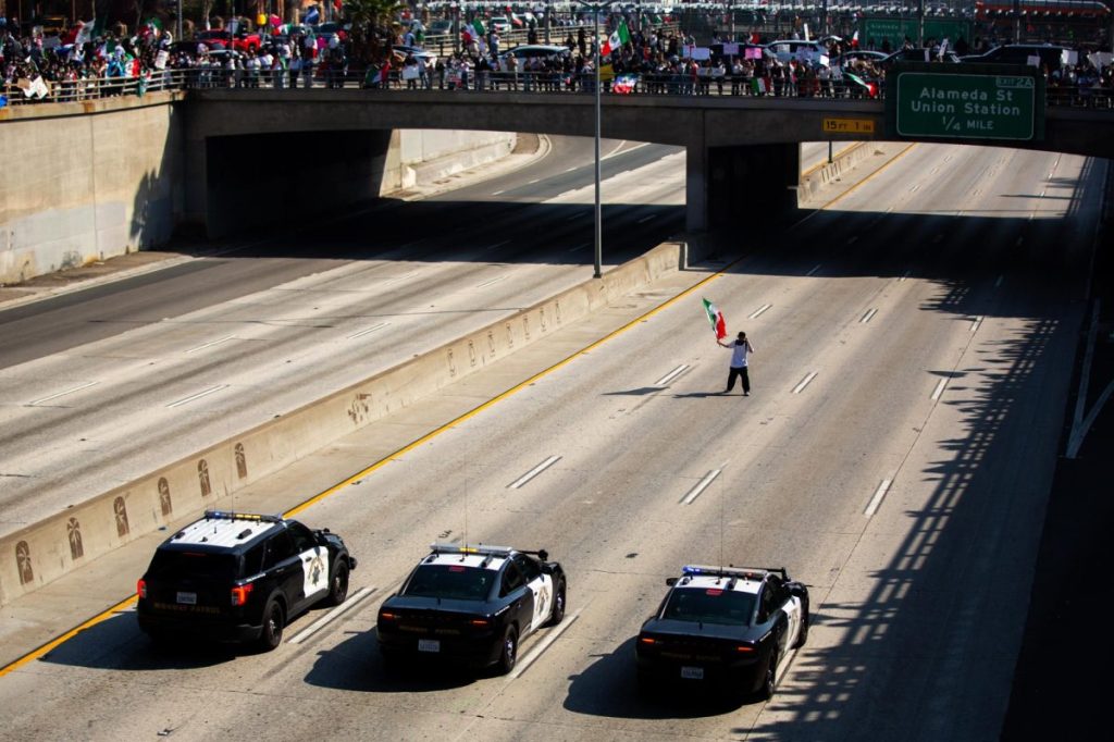 {1} Are you a terrorist. How can you know for sure. Caption: A man waves the Mexican flag on the 101 Freeway in front of three California Highway Patrol cars during a protest of President Donald Trump’s anti-immigration policies in Los Angeles, Calif., on Sunday, Feb. 2, 2025. Hundreds of protestors joined him after, resulting in a freeway closure. Image Credit: Solomon O. Smith