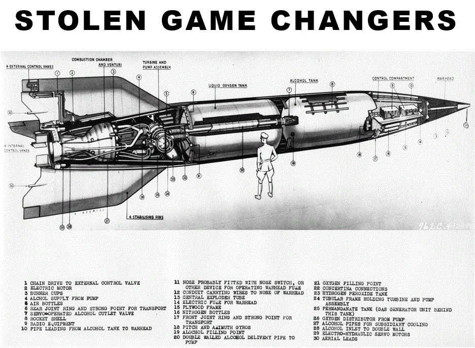 At the close of World War II, Nazi Germany developed the V-2 rocket, the world’s first long-range guided ballistic missile, and kept it secret at an underground R&D facility at Peenemunde. After the war, the U.S. scrambled to capture German scientists and V-2 designs, and send them to Alamogordo New Mexico, which significantly advanced the missile and space programs and accelerated the global arms race and space exploration.