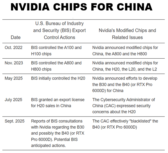 {4} NVIDIA Chips for China. Source and Credit: Britney Nguyen, “Here Are the Chips that Nvidia Can Sell to China,” Quartz, March 27, 2025.