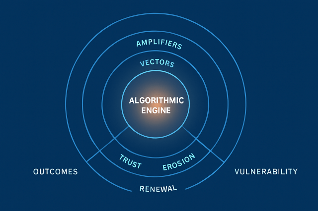 Amplifiers turn data into instability. Social media algorithms accelerate outrage, while dark web platforms provide anonymity for illicit coordination. State-backed influence operations weaponize these same systems to shape narratives and distort perception. In this ecosystem, the algorithm doesn’t need to “choose sides” — it merely optimizes for engagement, not truth. The result is a structural amplification of chaos.