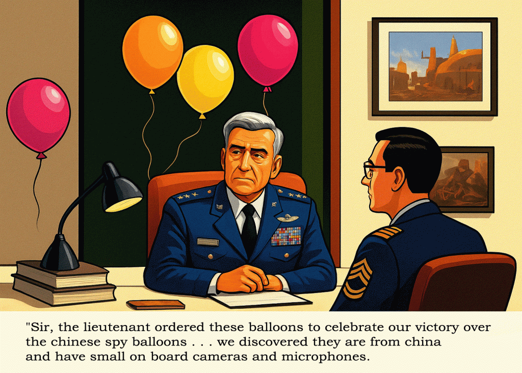 The irony in our editors cartoon above suggests that even our attempts to celebrate victory over Chinese aggression and espionage are powered by Chinese-made hardware and state owned or proxy controlled delivery services. The balloons, like the phones in our pockets, reveal the same paradox — that the tools of modern life double as the conduits of adversarial surveillance, dirty handed influence and worse.