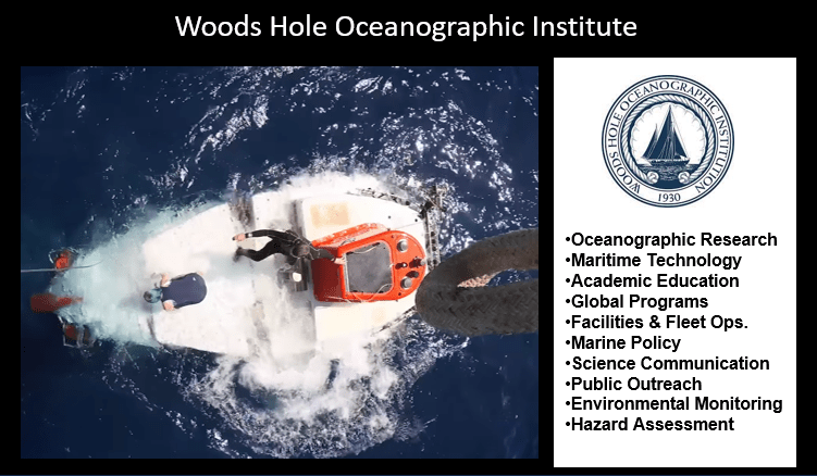 {5} The Woods Hole Oceanographic Institution (WHOI), located on Cape Cod, Massachusetts, is the world’s leading center for ocean science, engineering, and exploration — and a critical research partner to the U.S. Navy and intelligence community. Founded in 1930, WHOI develops advanced undersea vehicles, sensors, and autonomous maritime systems that map, monitor, and secure the global ocean. Its researchers pioneer technologies in deep-sea robotics, acoustic surveillance, and unmanned submersibles — capabilities vital to anti-submarine warfare, seabed infrastructure protection, and environmental intelligence. From discovering the wreck of the Titanic to advancing classified undersea navigation tools, Woods Hole remains at the frontier where scientific innovation meets national security, defining the maritime edge of American technological dominance.