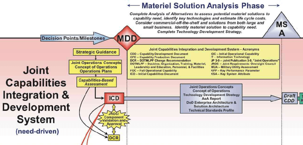 CAPTION: The Material Development Decision (MDD) is the initial and most critical decision point in the defense acquisition system, determining if a program's material is ready to move from the analysis phase to the development phase. It assesses if a need exists, if it's affordable, and if the technology is mature enough. The FAR (Federal Acquisition Regulation) sets the overarching rules for most federal agencies, while the DFARS (Defense Federal Acquisition Regulation Supplement) supplements the FAR with specific, additional requirements for the Department of War.