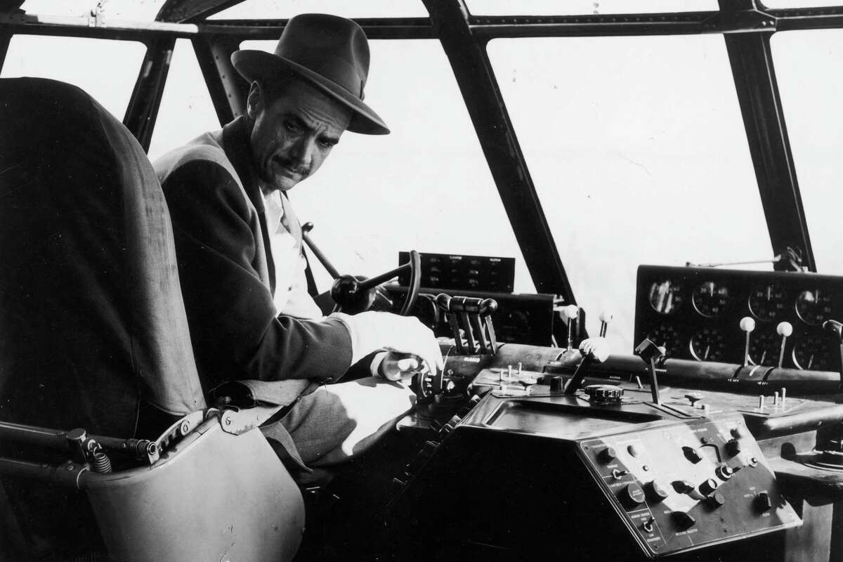 {3} 2nd November 1947: Howard Hughes (1905-1976) in the cockpit of his 219 foot flying boat HK-1, known as the ‘Spruce Goose’, on the day scheduled for testing when the plane made its only flight. Image Credit Keystone/Getty Images.