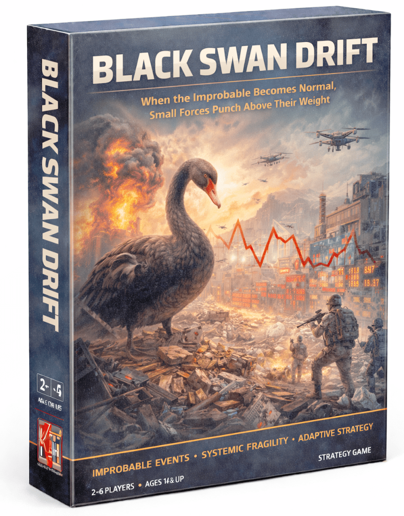 In a world where rare events gradually become routine, traditional predictions fail. Black Swan Drift lets players explore how low-probability, high-impact events reshape the battlefield, the market, and geopolitics. Each round models the accumulation of improbable events, forcing players to adapt, exploit, or collapse under stress.