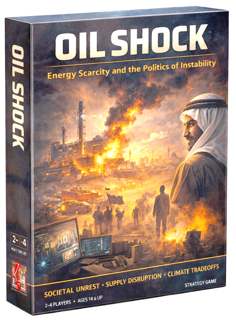 Oil Shock examines how energy disruption drives political instability faster than military defeat. Players manage supply shocks, embargoes, domestic unrest, and alliance strain in a tightly coupled global system.