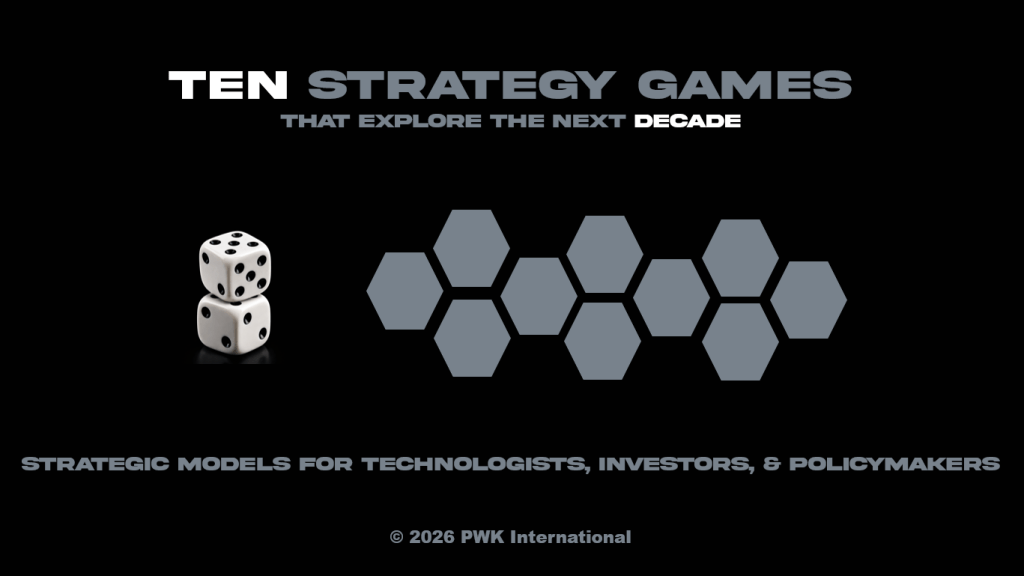 The strategy games presented here reflect how PWK approaches real-world problems: modeling complex interactions with realistic models that surface tradeoffs, stress assumptions, and reveal where conventional thinking breaks down. We advise technologists, investors, and policymakers on strategy, transition pathways, and competitive positioning in environments defined by uncertainty and systemic pressure. If these games sharpen how you see the decade ahead, that same lens can be applied directly to your challenges.
